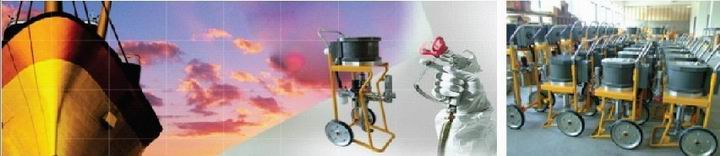 No gas spraying equipment’s power is compressed air. It is suitable for all the place of compressed air with pneumatic reversing power head; Has the vertical, wall hung, portable, trolley type, lift type and many other installation forms.