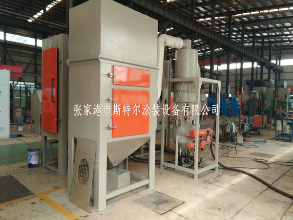 采用風力回砂通過7. 5Kw回砂風機,回至旋風分離器內,粉塵進入除塵箱,砂料回至儲砂箱中,使得砂料循環使用: